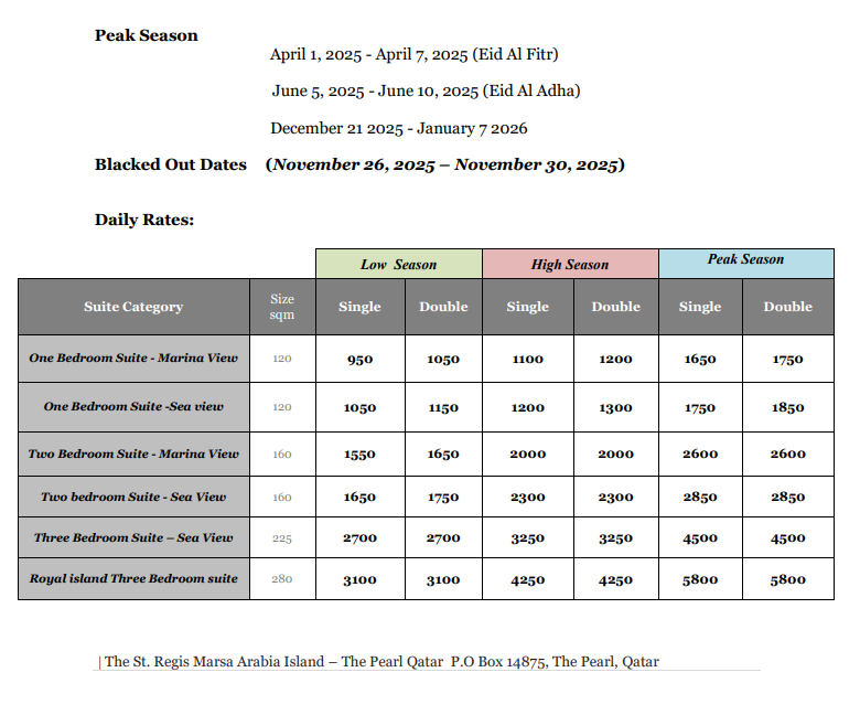 The St. Regis Marsa Arabia Island, The Pearl Qatar